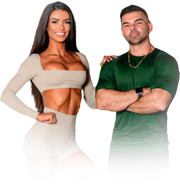 Somos o Treinador Kaká e a Carolina Marvila — marido e mulher, e juntos somamos mais de 27 anos de experiência em treino, nutrição e transformação corporal.